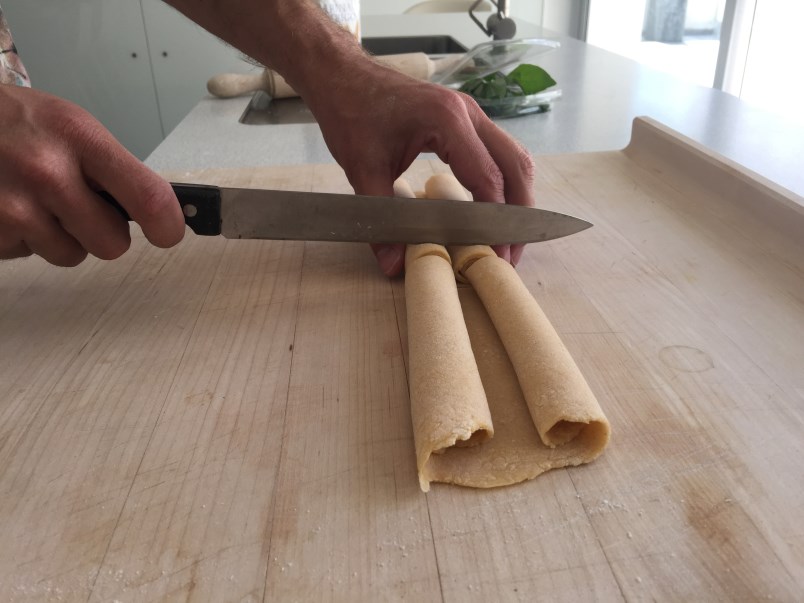 – Cortar para tallarines o para espaguetis, al gusto.
